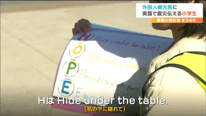 「これは地震が起きたときの行動の標語です。HOPEです。