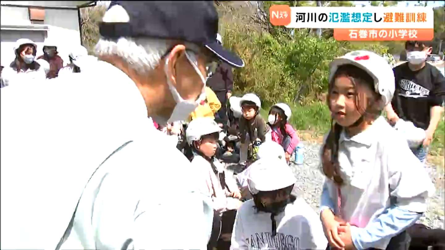 宮城県石巻市の大谷地(おおやち)小学校で行なわれた訓練は、震度7の大地震で近くの川の堤防が壊れる恐れがあるという想定です。