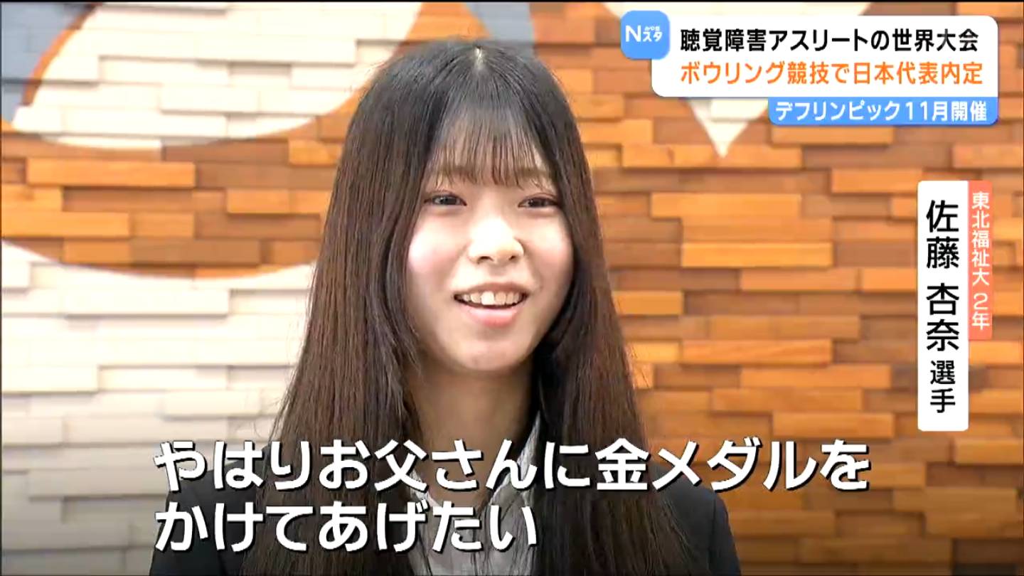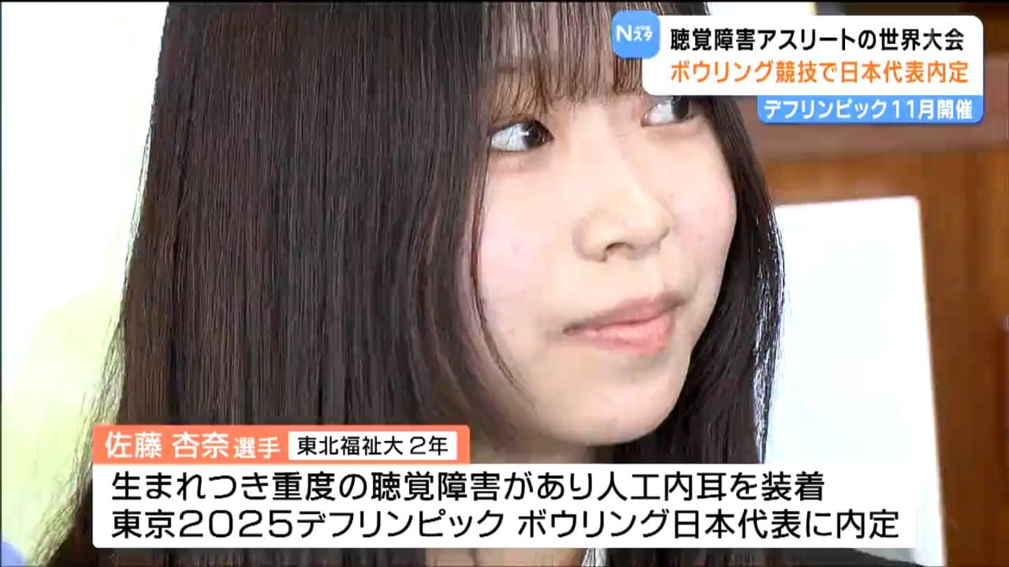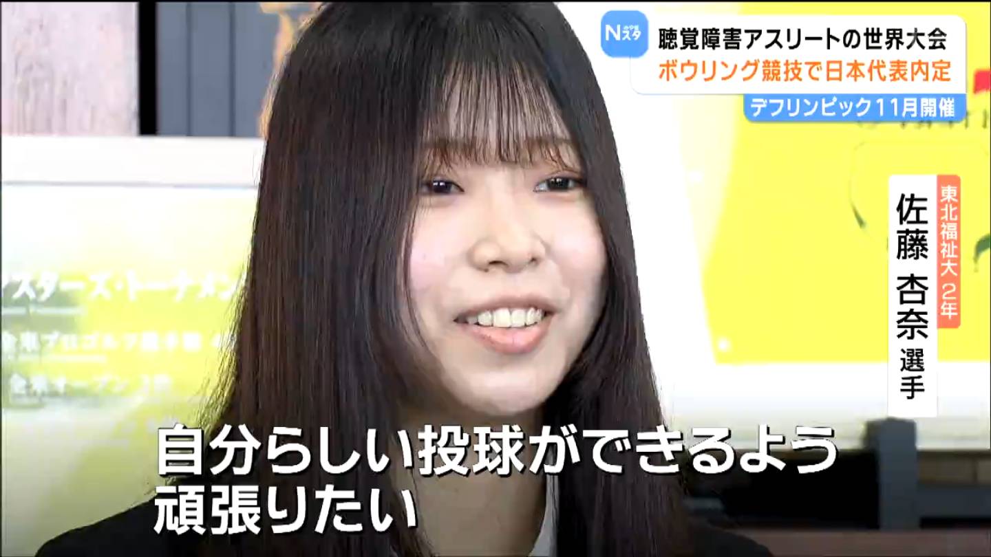デフリンピック東京大会のボウリング競技で日本代表に内定したのは、東北福祉大学2年生の佐藤杏奈(あんな)選手です。