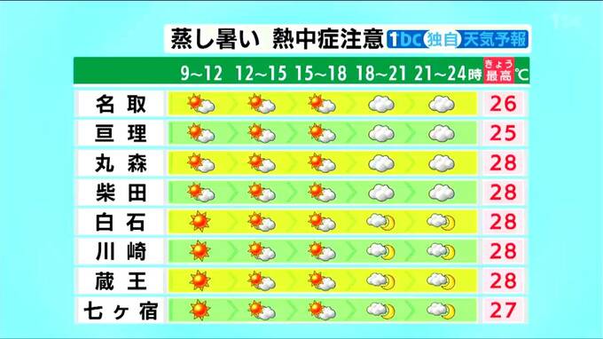 22日(日曜日)は、さらに前線が近づき、天気は下り坂。夜になると西部を中心に雨が降り出す予想ですが、午前中は強い日差しが照りつけ、最高気温は仙台で31℃、白石では33℃まで上がりそうです。