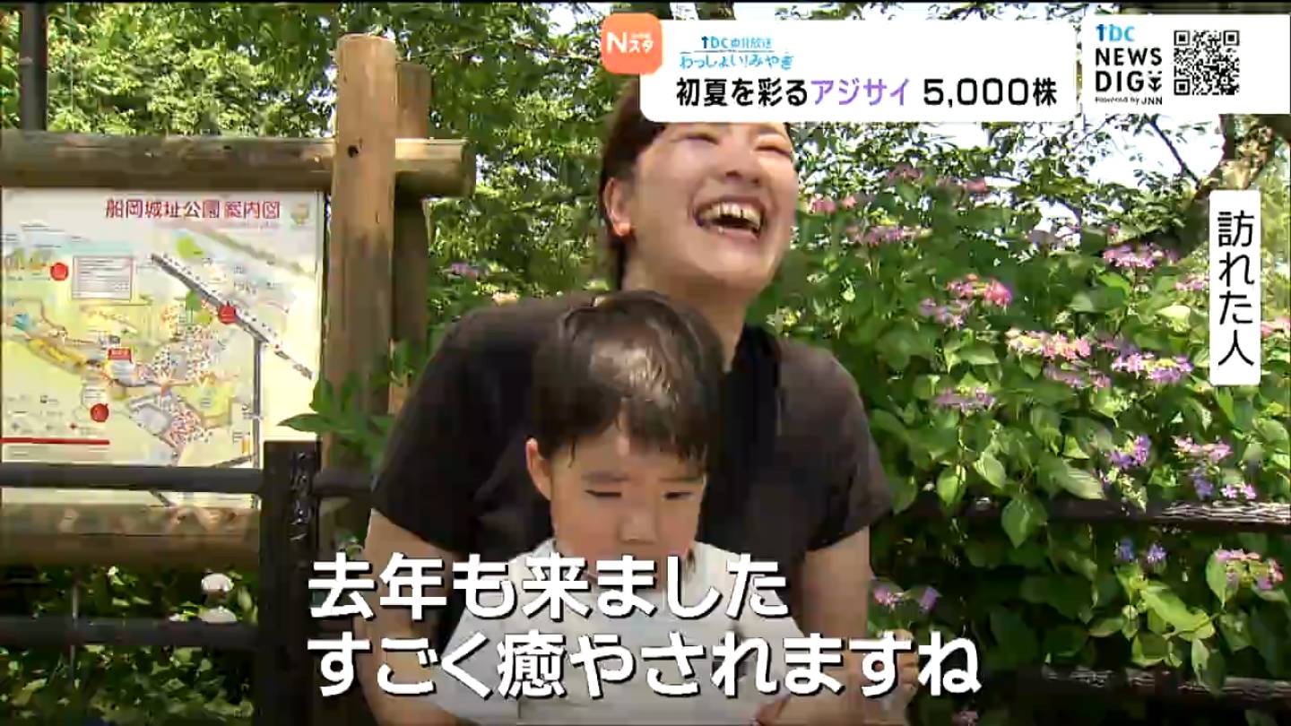 宮城県柴田町の船岡城址公園で「しばた紫陽花まつり」が、20日から始まり、初夏を彩るアジサイが訪れた人たちの目を楽しませています。