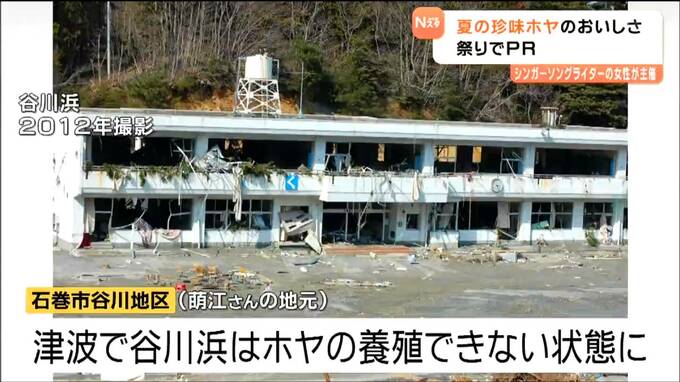 東日本大震災では萌江さんの地元・石巻市谷川地区にも津波が襲い、ホヤの水揚げが盛んな谷川浜では、養殖ができない状態になりました。