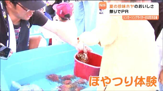 漁師の渥美さんは、水揚げしたホヤを使った「ほやつり体験」のブースを出しました。
