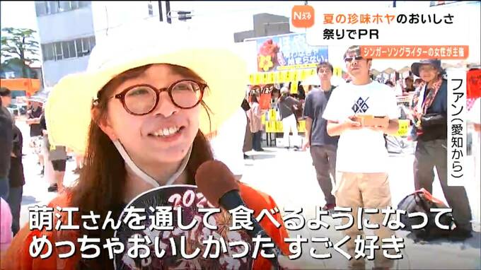 また、県外から祭りに駆け付けた萌江さんのファンの姿も。