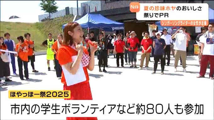 祭りには市内の学生ボランティアなどおよそ80人も参加しました。萌江さんはメンバーをまとめながら全力でホヤ漁師たちの思いに応えます。
