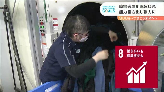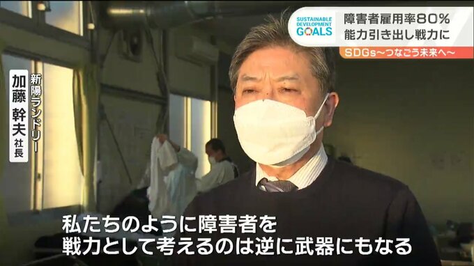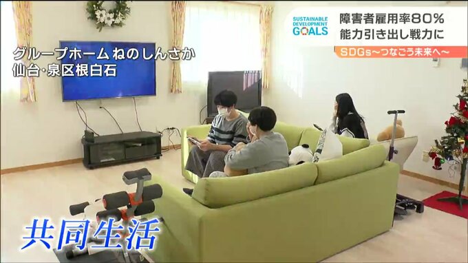 新陽ランドリーは、多くの障害者を雇用する上で、グループホームを整備しました。障害者社員が共同生活をしています。障害者社員の中には、家庭に複雑な事情を抱えた人が少なくなく、社員寮を整備したことが始まりですが、共同生活は日々の業務にも良い影響をもたらしたといいます。