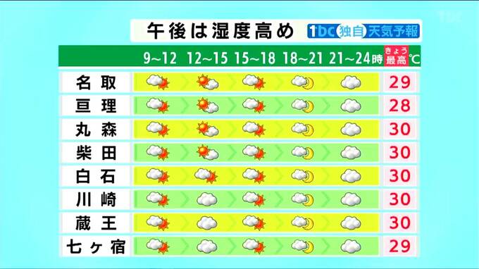 湿度高く日中は基本晴れる見込み