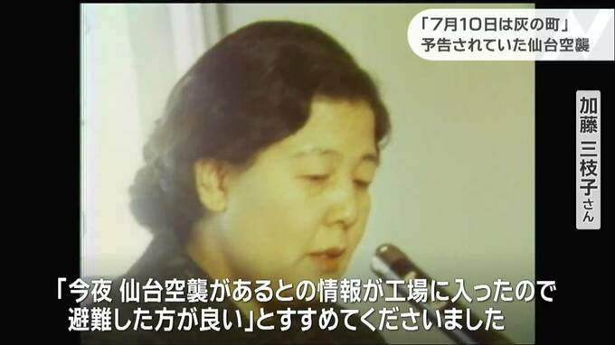 「夕方、軍需工場に勤めている近所のおじさんが家に見えまして、今夜仙台空襲があるからとの情報が工場に入ったので、避難した方が良いのではないかとすすめてくださいました」