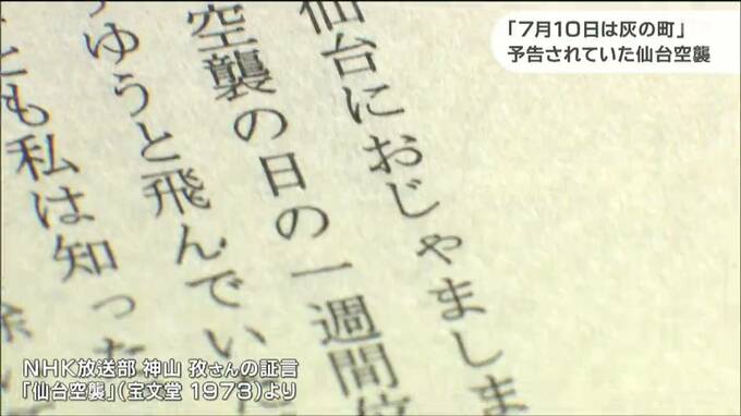 「日本向け宣伝放送は7月9日、仙台におじゃましますから疎開するようにとすすめていた。その内容を口外しようものなら、憲兵が来て連行され、重罰にされるのである」