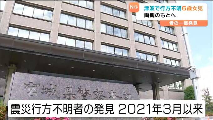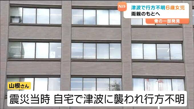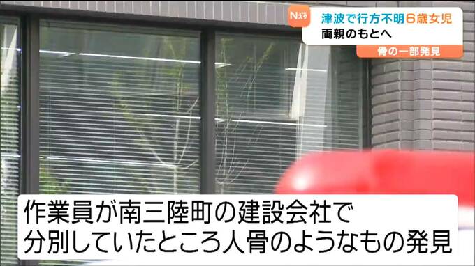 おととし、南三陸町の建設会社で見つかった人の骨の一部が、東日本大震災で行方不明となっていた6歳の女の子のものと判明しました。今後、両親に引き渡されるということです。
