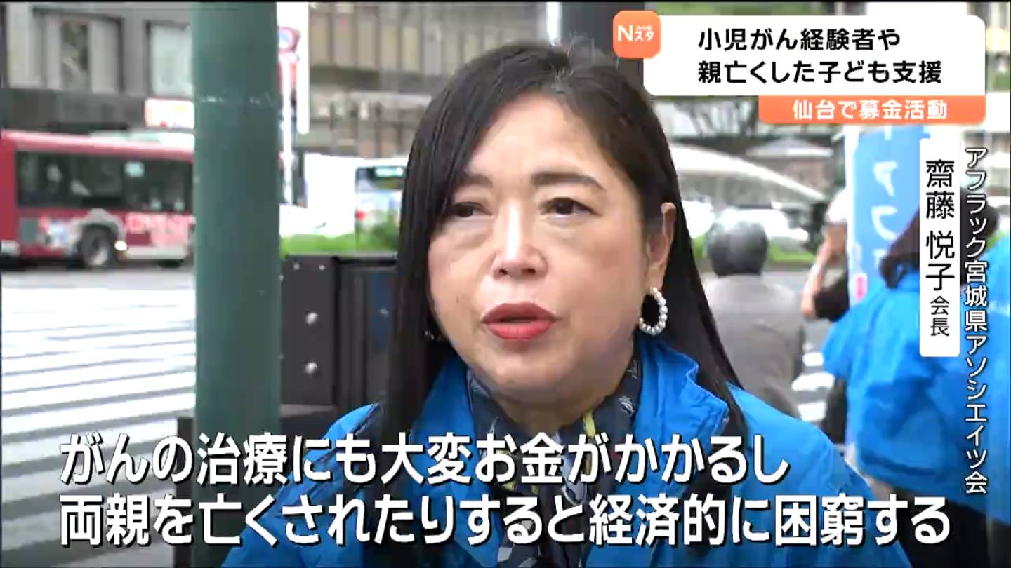 小児がんを経験したりがんで親を亡くしたりした子どもたちを支援しようと、仙台で募金活動が行われました。