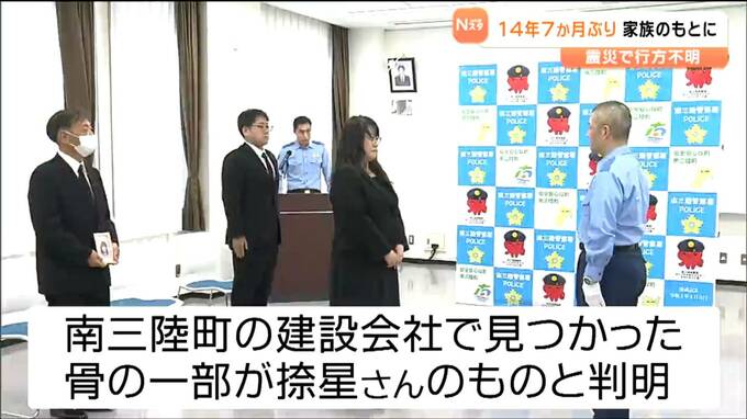 捺星さんは震災の発生当時、岩手県山田町の自宅で津波に襲われて行方不明になりました。2023年、南三陸町の建設会社で見つかった下あごの骨の一部がDNA鑑定などの結果から9月、捺星さんのものと判明しました。