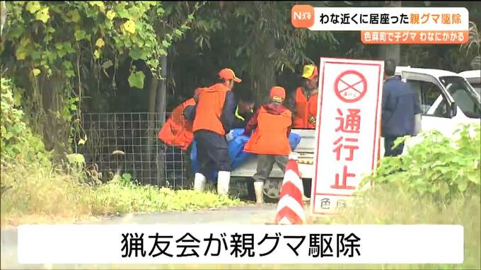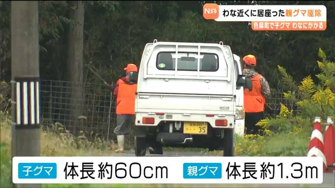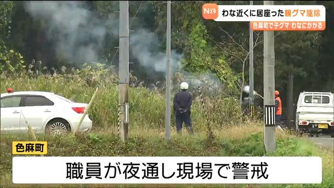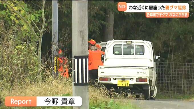 警察によりますと、10月15日午後6時頃、色麻町一の関の雑木林に仕掛けられた箱わなに子グマがかかっていて、近くに親グマがいると住民から通報がありました。子グマは体長約60センチ、親グマは体長約1.3メートルで、わなから50メートルほどの場所には民家があるため、色麻町の職員らが夜通し親グマの動きを警戒していました。
