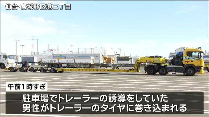仙台港でトレーラー誘導“大阪の61歳男性”「後輪」に巻き込まれ死亡 2022年12月7日(水) 11:06 国内 7日未明、仙台港のフェリー乗り場の駐車場で、トレーラーを誘導していた男性が後輪に巻き込まれて死亡しました。7日午前1時過ぎ、仙台市宮城野区港3丁目の仙台港のフェリー乗り場の駐車場で、トレーラーの誘導をし…