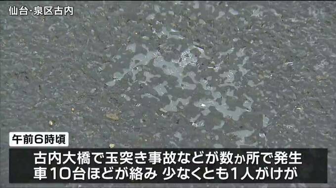 7日午前6時頃、仙台市泉区古内の県道仙台大衡線「古内大橋」で、路面の凍結による乗用車の玉突き事故などが数か所で起き、車あわせて10台ほどが絡んで少なくとも1人がけがをしました。