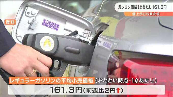 石油情報センターによりますと、5日時点の県内でのレギュラーガソリンの平均小売価格は、1リットルあたり▼161円30銭と前の週より▼2円高くなりました。
