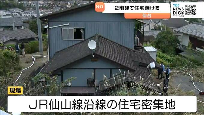 現場は、JR仙山線の沿線近くの住宅地が密集する地域で、警察と消防が火が出た原因を調べています。