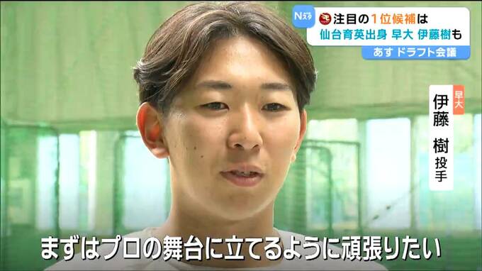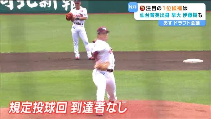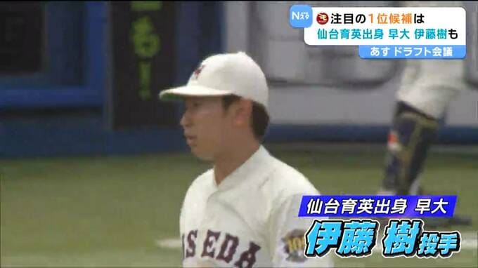さらに上位指名が予想されるのは、仙台育英出身で早稲田大学の伊藤樹投手。東京六大学通算21勝をあげている宮城ゆかりの右腕を楽天は指名するのか、注目です。