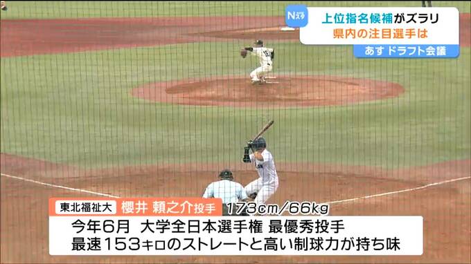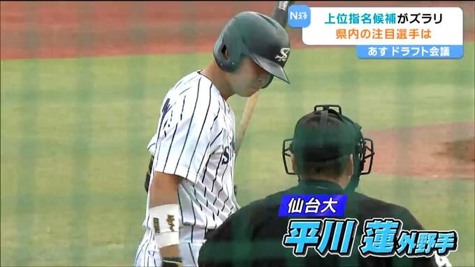 そして仙台二高出身で、東京大学の酒井捷選手も注目。東京6大学リーグのベストナインに輝いた実績を持ち東大史上初となる野手のプロ入りへ吉報を待ちます。
