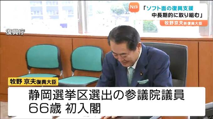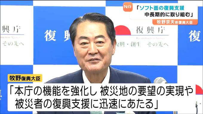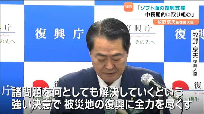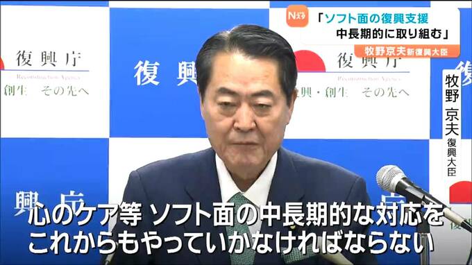 21日発足した高市内閣で復興大臣に就任した牧野京夫氏が会見し「被災者の心のケアなどソフト面の復興支援に中長期的に取り組んでいく」と決意を述べました。