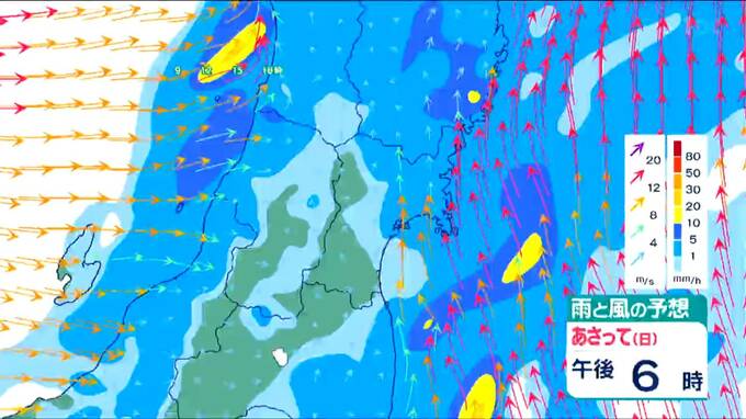 日曜日は2つの前線を伴った低気圧が本州付近を挟むように発達しながら進んでいきます。この影響で県内は天気が大きく崩れる見込みです。