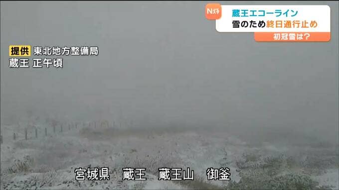 強い寒気の影響で蔵王の山頂付近では雪が積もり、蔵王エコーラインは、28日終日通行止めとなりました。