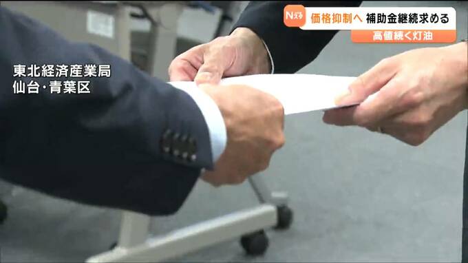 東北6県の生協連の代表は10月29日、東北経済産業局を訪れ、担当者に要請書を手渡しました。この中では、ガソリンの暫定税率が廃止されるまでとされている元売りへの補助金など、灯油の価格抑制のための政策の継続や低所得者などへの支援のため、自治体に対する交付金など5項目を求めています。
