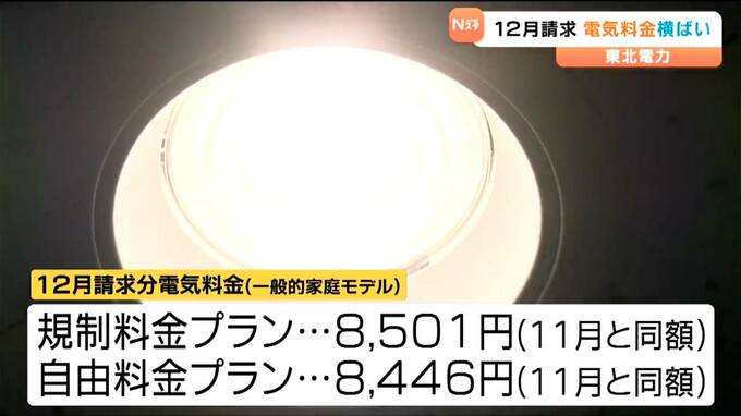 【冬の電気代はどうなる?】東北電力12月請求分の電気料金 11月と変わらず 2025年10月30日(木) 18:30 国内 東北電力の12月請求分の電気料金は、一般的な家庭のモデルで前の月と変わらず8,501円となりました。東北電力によりますと、12月請求分の一般的な家庭モデルの電気料金は、規制料金のプランで8,501円で、11月請求分…
