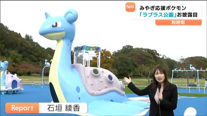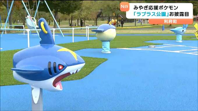 みやぎ応援ポケモン「ラプラス」などがデザインされた「ラプラス公園」は宮城県利府町のモリリン加瀬沼(かせぬま)公園に整備されました。