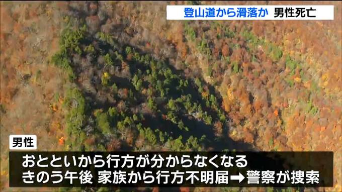 警察によりますと、男性は3日から行方が分からなくなっていて、4日午後、家族から行方不明届が出され、警察が捜索していました。男性の車は秋保ビジターセンターの近くに停めてあったということです。現場は登山道を15分ほど登った場所で警察は男性が登山道から滑落したとみて調べています。