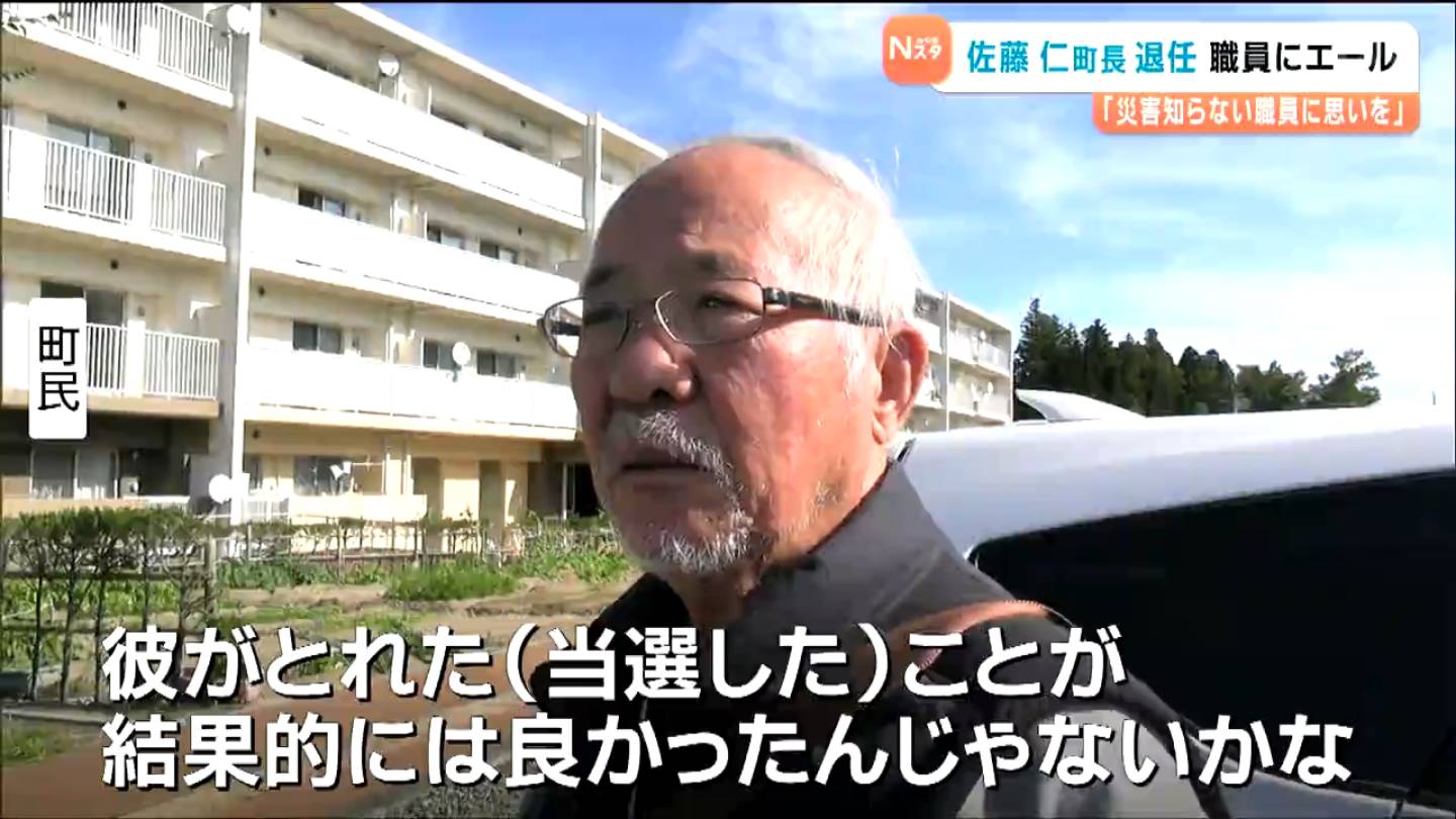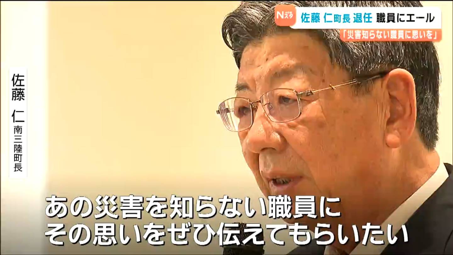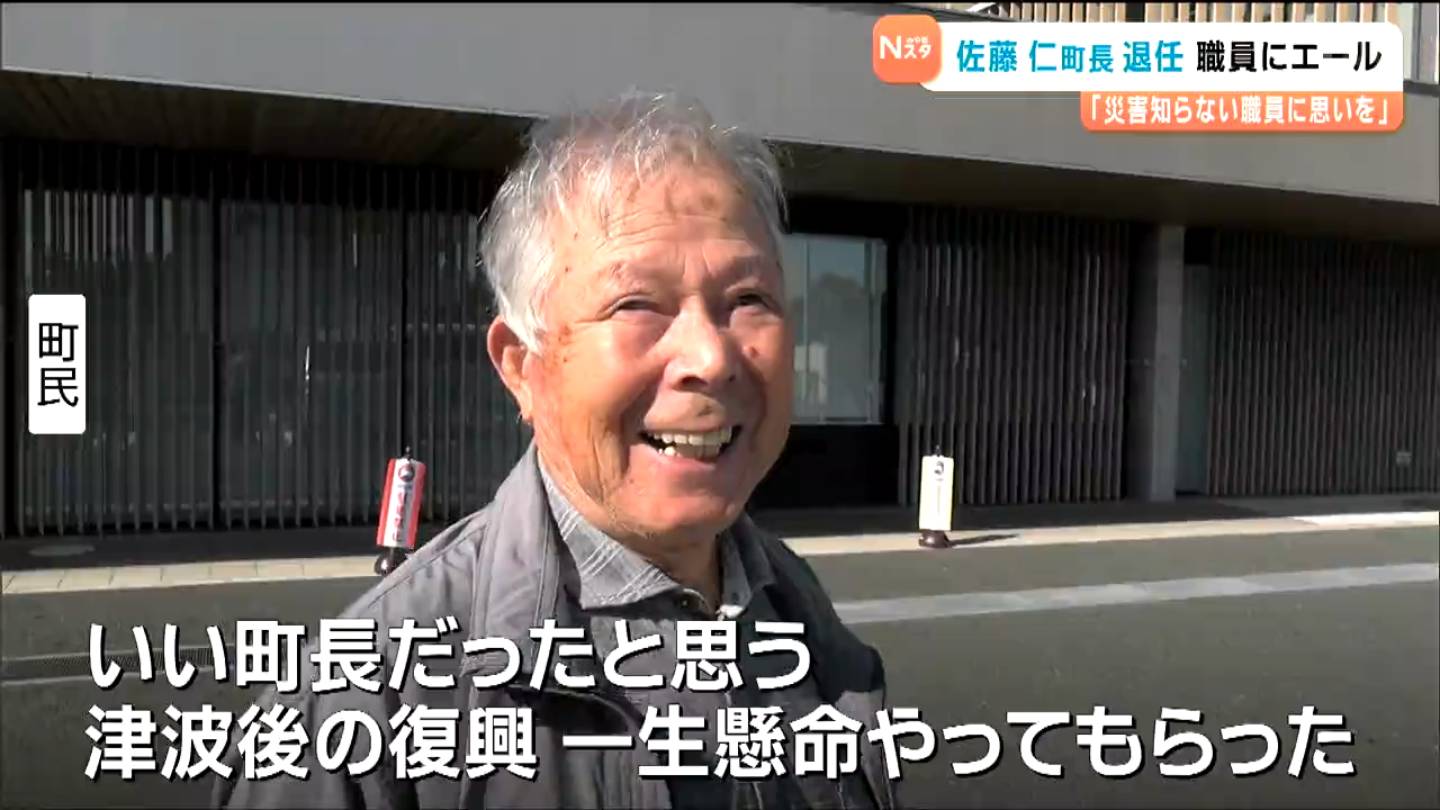 東日本大震災で関連死も含め620人が死亡、211人が行方不明となった南三陸町。町民からは復興に向け指揮をとってきた佐藤町長の退任を惜しむ声が聞かれました。