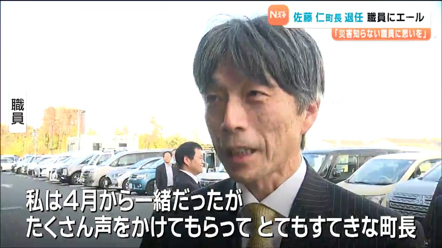 町長を退任した佐藤仁さんは今後、全国を回り語り部として震災の教訓を伝える活動をするということです。南三陸町では、11月6日から町の前総務課長で10月21日に無投票で当選した千葉啓(ちば・ひらく)新町長による町政が始まります。