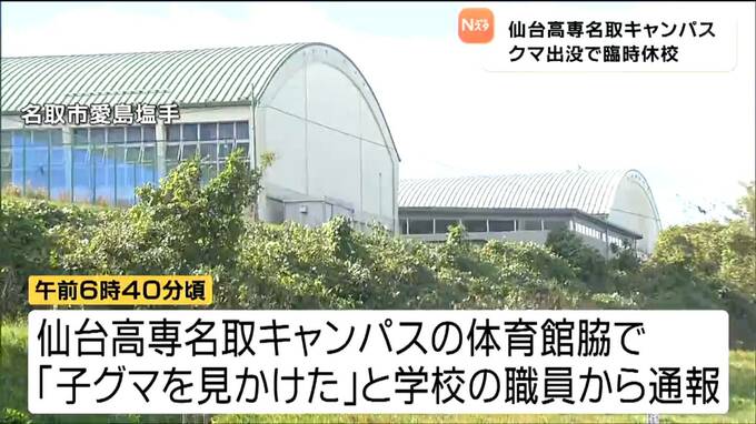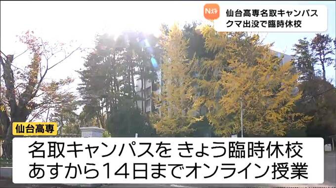 仙台高専はクマの出没を受け名取キャンパスを11日に臨時休校とするほか、12日から14日まではオンラインで授業を行います。