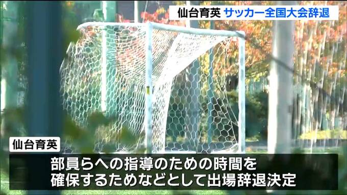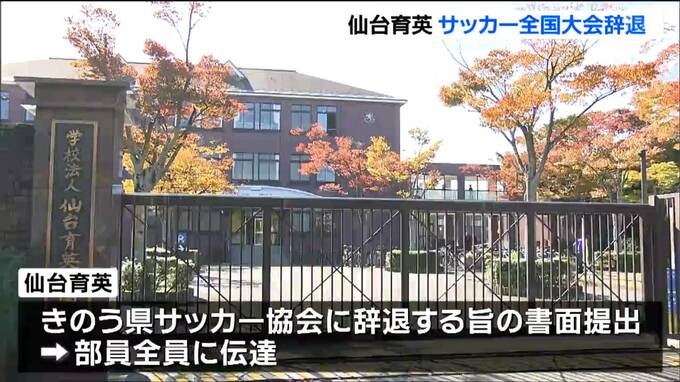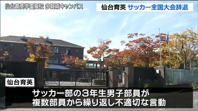 仙台育英高校のサッカー部で男子部員が継続的に他の部員から不適切な言動を受けていた問題を受けて仙台育英高校は、全国高校サッカー選手権大会への出場辞退を決めたことが分かりました。