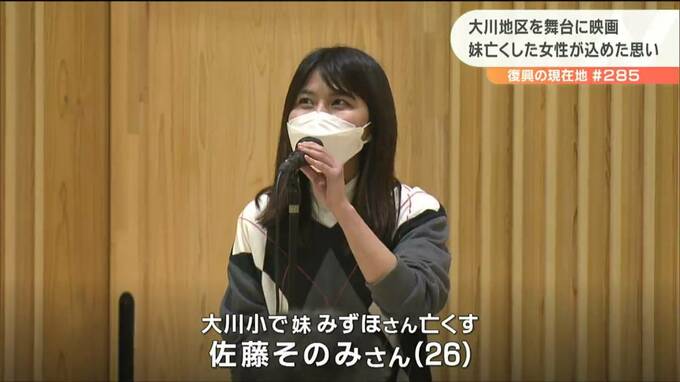 東日本大震災の津波で、宮城県石巻市の大川小学校に通う妹を亡くした女性が制作した映画が11日、初めて映画の舞台となった大川地区で上映されました。女性が映画に込めた思い、そして今思うこととは。