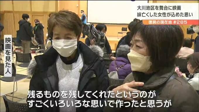 震災後、自分と同じように葛藤や心の傷を抱え、落ち着かない時間を過ごしてきた大川の人たちに映画を通し「自分だけじゃなかった」と安心してほしかった…。そのみさん自身も、ほっとしたような表情を浮かべていました。