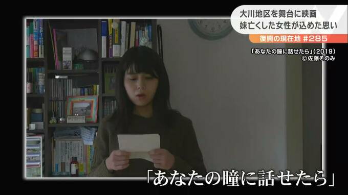 続くドキュメンタリー映画「あなたの瞳に話せたら」は、そのみさんら大川で家族や友人を亡くした当時の子どもたちが、何を感じどう生きてきたのかを故人に宛てた手紙の朗読を通じ描きました。