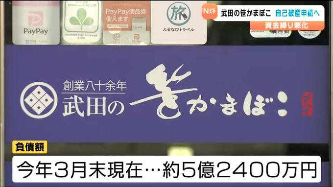 1935年創業の老舗「武田の笹かまぼこ」自己破産申請へ 負債額は約5億2400万円 宮城・塩釜市 2025年11月21日(金) 18:59 国内 宮城県塩釜市の老舗笹かまぼこメーカー"武田の笹かまぼこ"が資金繰りの悪化により11月20日に事業を停止し、自己破産申請の準備に入ったことが分かりました。民間の信用調査会社帝国データバンクによりますと、自己…