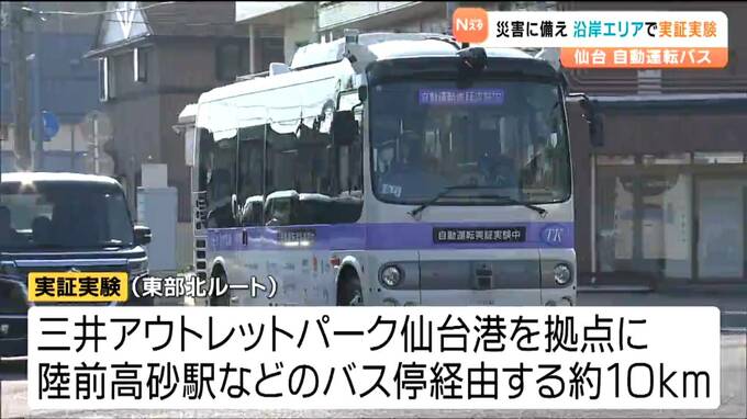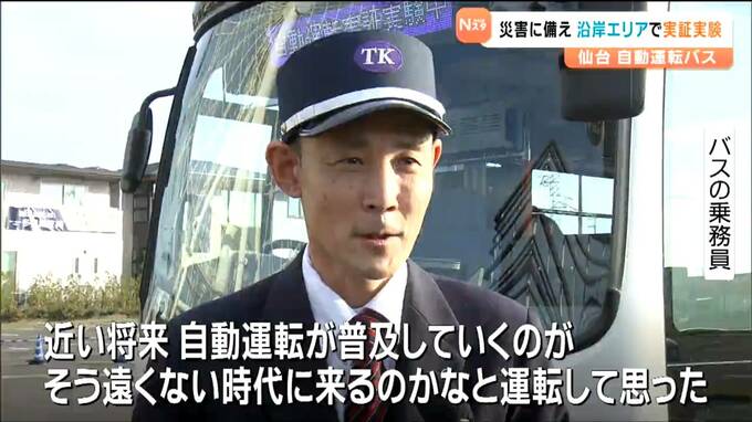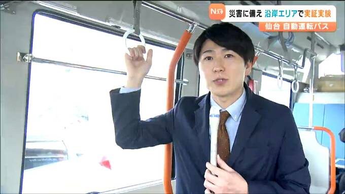 仙台市宮城野区で始まった自動運転バスの実証実験。11月27日は報道関係者を対象にした試乗会が開かれ、三井アウトレットパーク仙台港を拠点に、JR陸前高砂駅などのバス停を経由する約10キロの「東部北ルート」を巡りました。