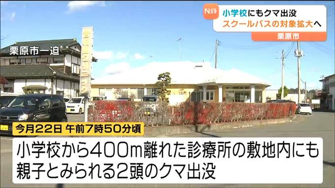 11月22日午前7時50分頃には小学校から400メートル離れた診療所の敷地内にも親子とみられる2頭のクマが出没、建物から出てきた70代の男性が襲われ、顔や腕にけがをしました。