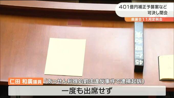 なお、あっせん利得処罰法違反事件で逮捕・起訴された仁田和廣議員はこの定例会に一度も出席しませんでした。