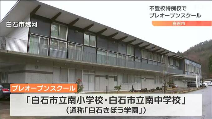 来春開校予定の宮城県白石市の小中一貫の不登校特例校で14日、保護者と児童・生徒を対象にプレオープンスクールが開かれました。