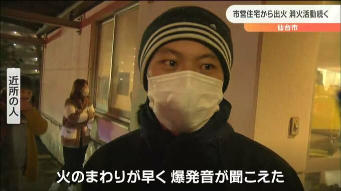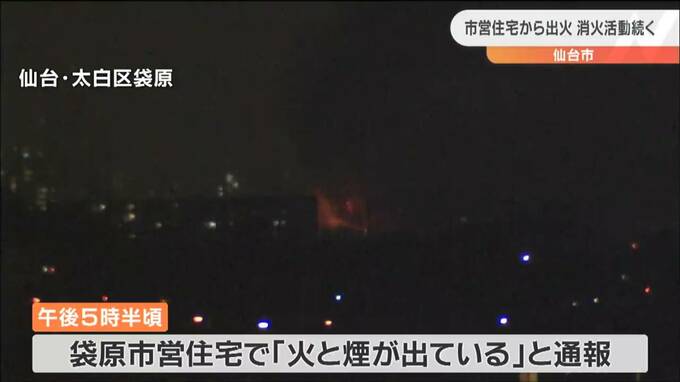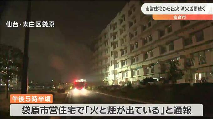 14日夕方、仙台市内の市営住宅から火が出て現在も消防が消火活動を行っています。