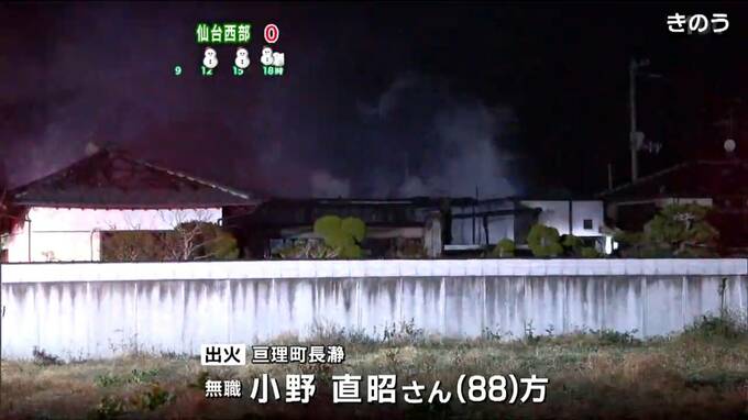 11日午後3時50分頃、亘理町長瀞の無職、小野直昭さん(88)の住宅から火が出ました。