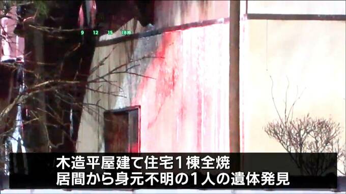 消防がポンプ車など7台を出して消火にあたり、火はおよそ4時間後に消し止められましたが、小野さんの木造平屋建て住宅1棟が全焼し、住宅の居間から身元不明の1人の遺体が見つかりました。