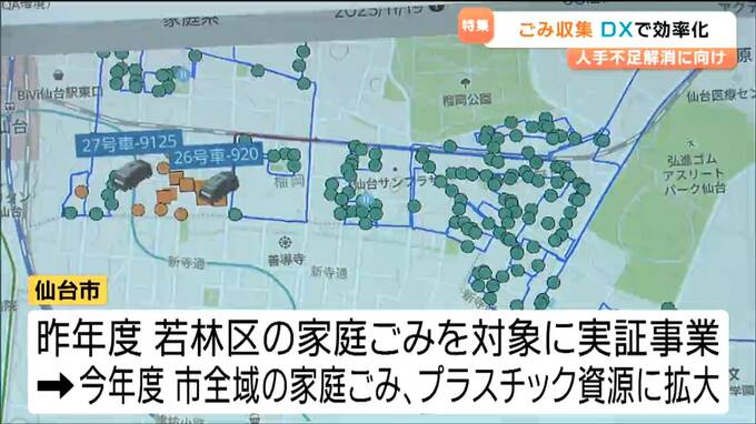 しかし少子高齢化の影響で人手不足という課題を抱えていました。そうした中、2024年度行った実証事業の結果、焼却工場への平均運搬回数を1日0.6回減らすことに成功したほか、平均走行距離や時間を減らすことができました。既にこのシステムを導入した神奈川県座間市では、年間の運搬回数を2割ほど減らすことに成功したということです。この実績に目を付け、仙台市では東北で最も早く実証事業に踏み出しました。