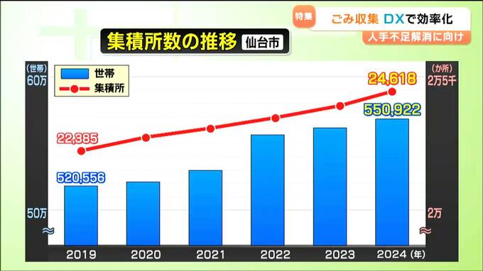 仙台市では、世帯数の増加などに伴い、集積所の数は年々増えています。