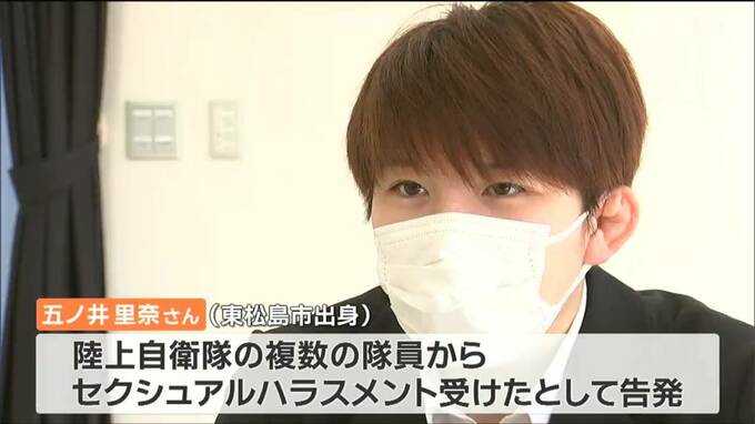 元陸上自衛隊五ノ井里奈さん(東松島市出身)への「性的な身体接触強要」セクハラで“5人懲戒免職” 2022年12月15日(木) 17:00 国内 防衛省は、元陸上自衛隊の五ノ井里奈さんに対しセクシュアル・ハラスメントを行ったとして、男性隊員5人を懲戒免職処分としました。この問題は、陸上自衛隊で勤務していた東松島市出身の五ノ井里奈さんが複数の男…