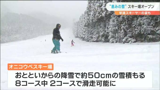 オニコウベスキー場では14日から、降雪で50センチほど雪が積もり、8コース中2コースで滑走ができるようになりました。