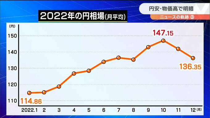「2月のロシアのウクライナ侵攻と3月から始まったアメリカの金融引き締めにより円安が加速した1年だった。食料品、そしてエネルギー価格、ガソリンや灯油、電気代、こういったものが値上がりしたということで、消費者からしてみれば節約の難しい品目の値上がりといったのが続いて、家計にとってはかなり厳しい状況だったということが言える」